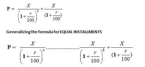 P= X/(1+r/100)n+ …………………….X/(1+r/100)
