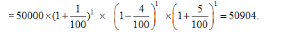 =45000(1+1/100)1 x (1-2/100)1 x (1+3/100)1=45877.23» 45877