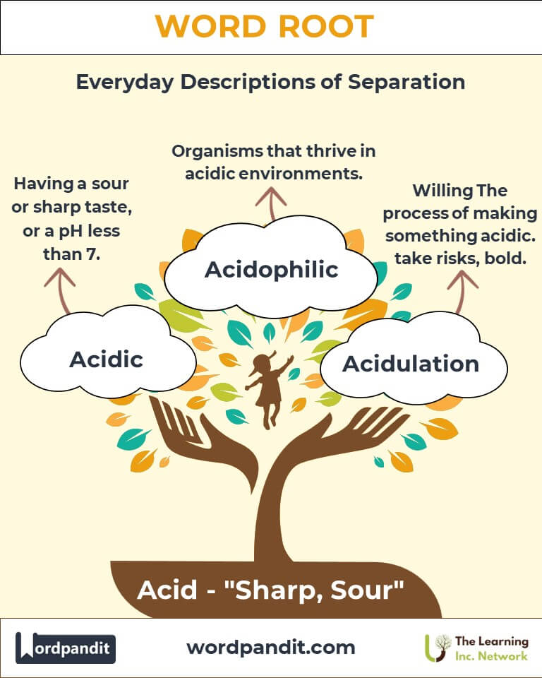 What gives vinegar its tang, lemon its bite, and chemistry its intrigue? The answer lies in the word root Acid, from the Latin acidus, meaning "sour" or "sharp." Pronounced as "ass-id," this root resonates through various fields, denoting not only taste but also a fundamental property of substances. From its culinary role to its scientific significance in defining acids as proton donors, Acid bridges everyday experiences and technical realms.