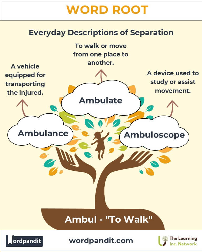 The root "Ambul" originates from the Latin ambulare, meaning "to walk." In ancient Rome, walking symbolized life’s movement—whether physical or metaphorical. Over time, "Ambul" became embedded in words related to travel, movement, and later, healing. For instance, the term "ambulance" evolved from the mobile medical units used to carry wounded soldiers on the battlefield.