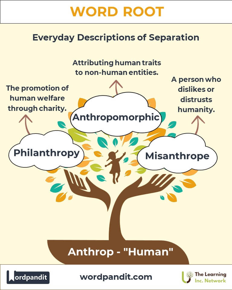The word root "Anthrop" embodies the vast spectrum of human nature, culture, and intellect. Pronounced as "an-throp," it stems from the Greek word "anthropos," meaning "human being" or "man." This root forms the backbone of words in fields ranging from anthropology (the study of humans) to philanthropic (love of humanity). It symbolizes an enduring quest to understand ourselves and foster compassion.