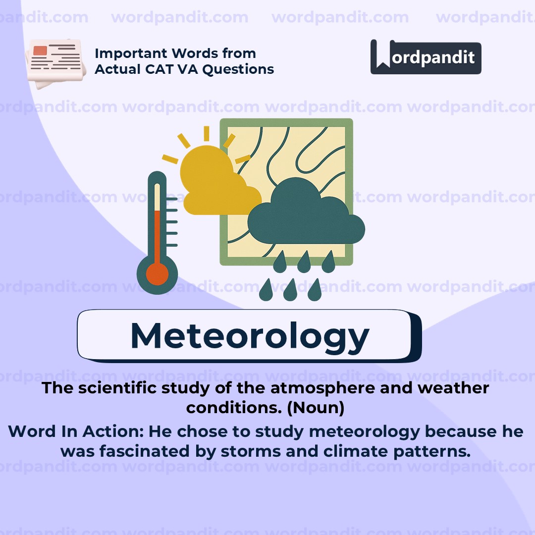 Meaning: The scientific study of the atmosphere and weather patterns (Noun)