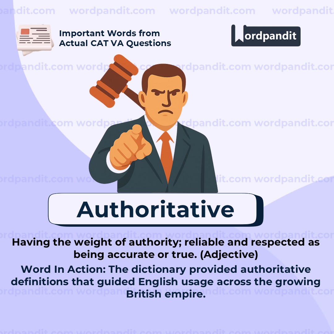 "Authoritative" refers to something that is accepted as being accurate, definitive, and reliable, often because it comes from a recognized source of knowledge or power. In this context, the term describes the kind of dictionary Samuel Johnson was expected to produce—one whose definitions would not only be trustworthy but also command respect in a rapidly expanding empire. It signals clarity, credibility, and intellectual weight.