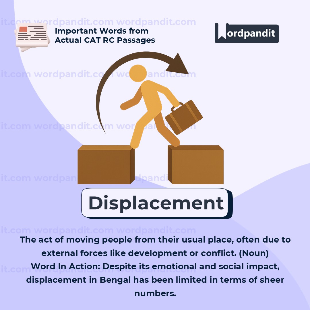 âDisplacementâ is a powerful word that often appears in social sciences, history, and geography. It's not just physicalâit can also mean emotional or cultural disruption. When you read this word, always ask: What or who is being moved? And what are the consequences?