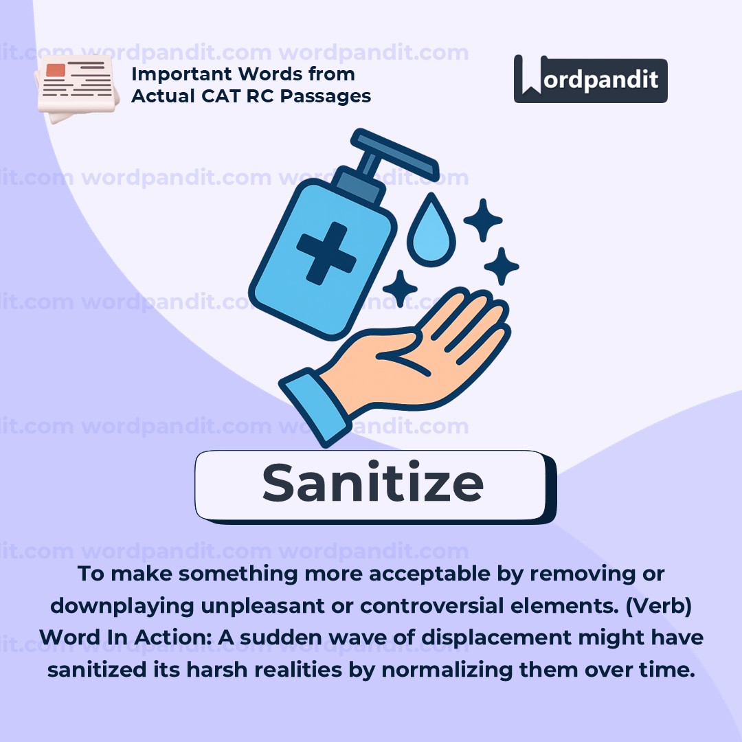This is a double-edged wordâgreat for talking about physical cleanliness, but also powerful in social and political critique. If someone âsanitizesâ history, a report, or an event, theyâre hiding or toning down the truth. Always ask: Whatâs being removed, and why?