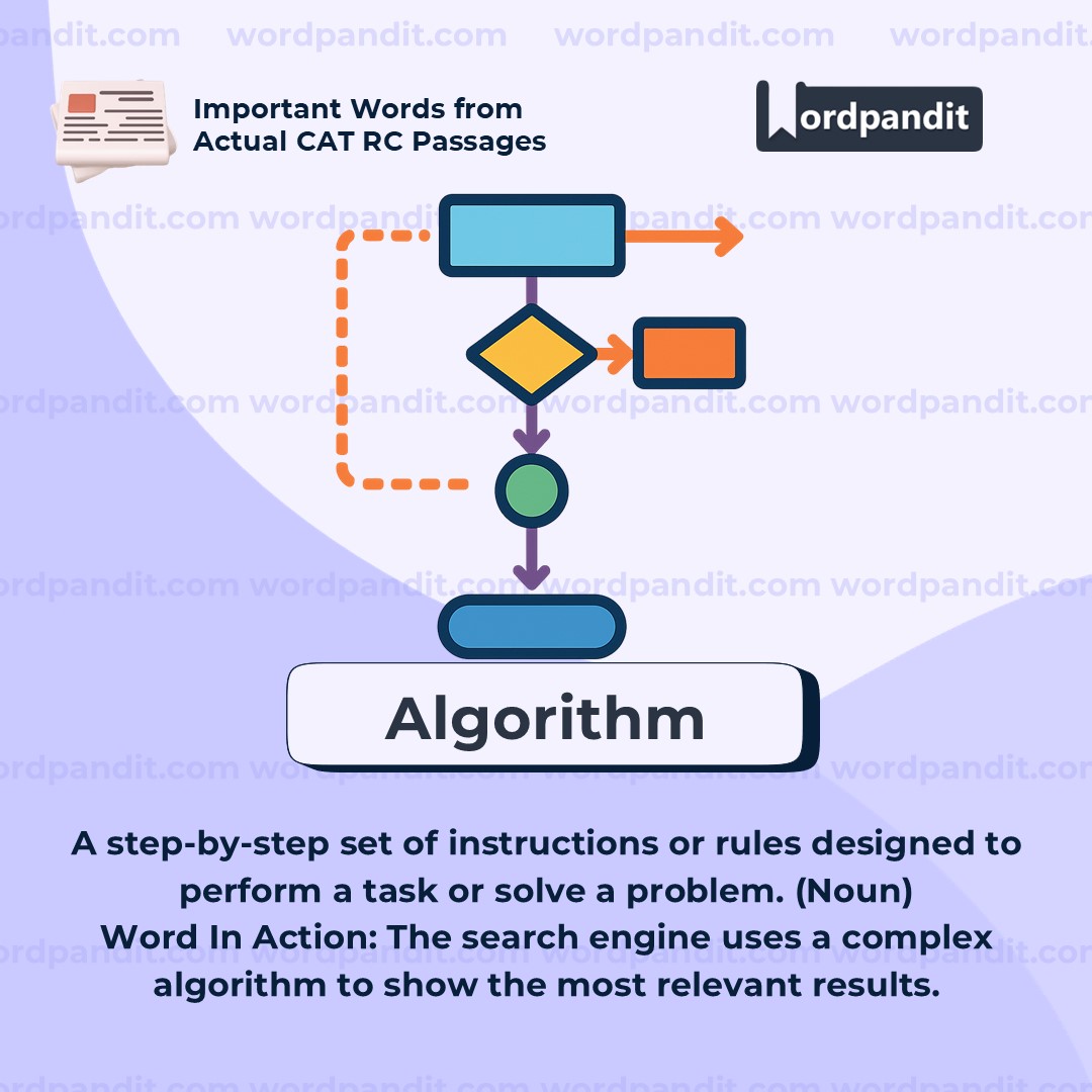 Meaning: A step-by-step procedure or formula for solving a problem, often used by computers (Noun)