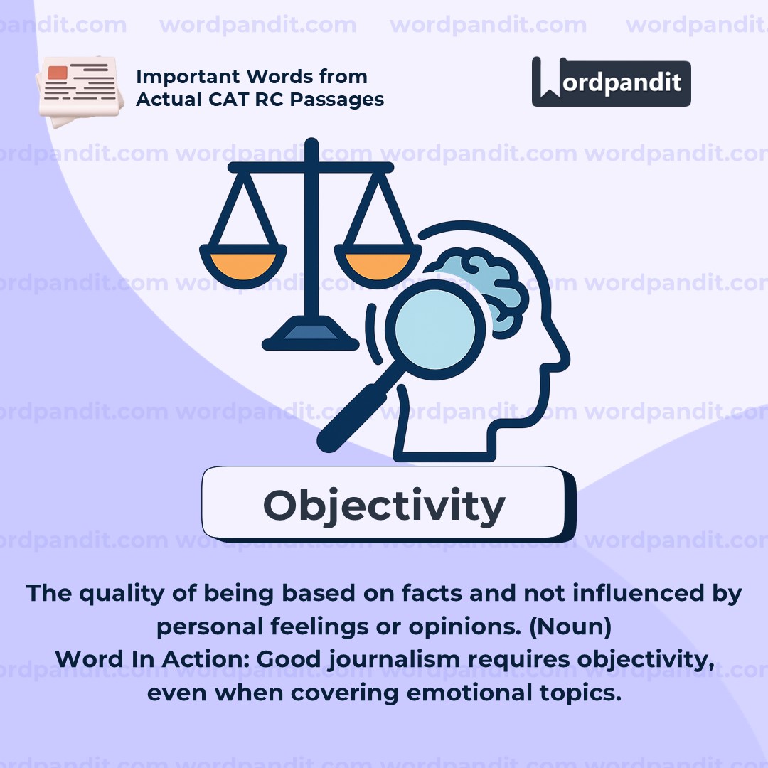 Meaning: The quality of being based on facts and free from personal bias (Noun)