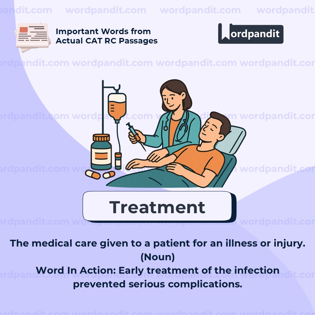 Meaning: Medical care given to a patient for an illness or injury (Noun)