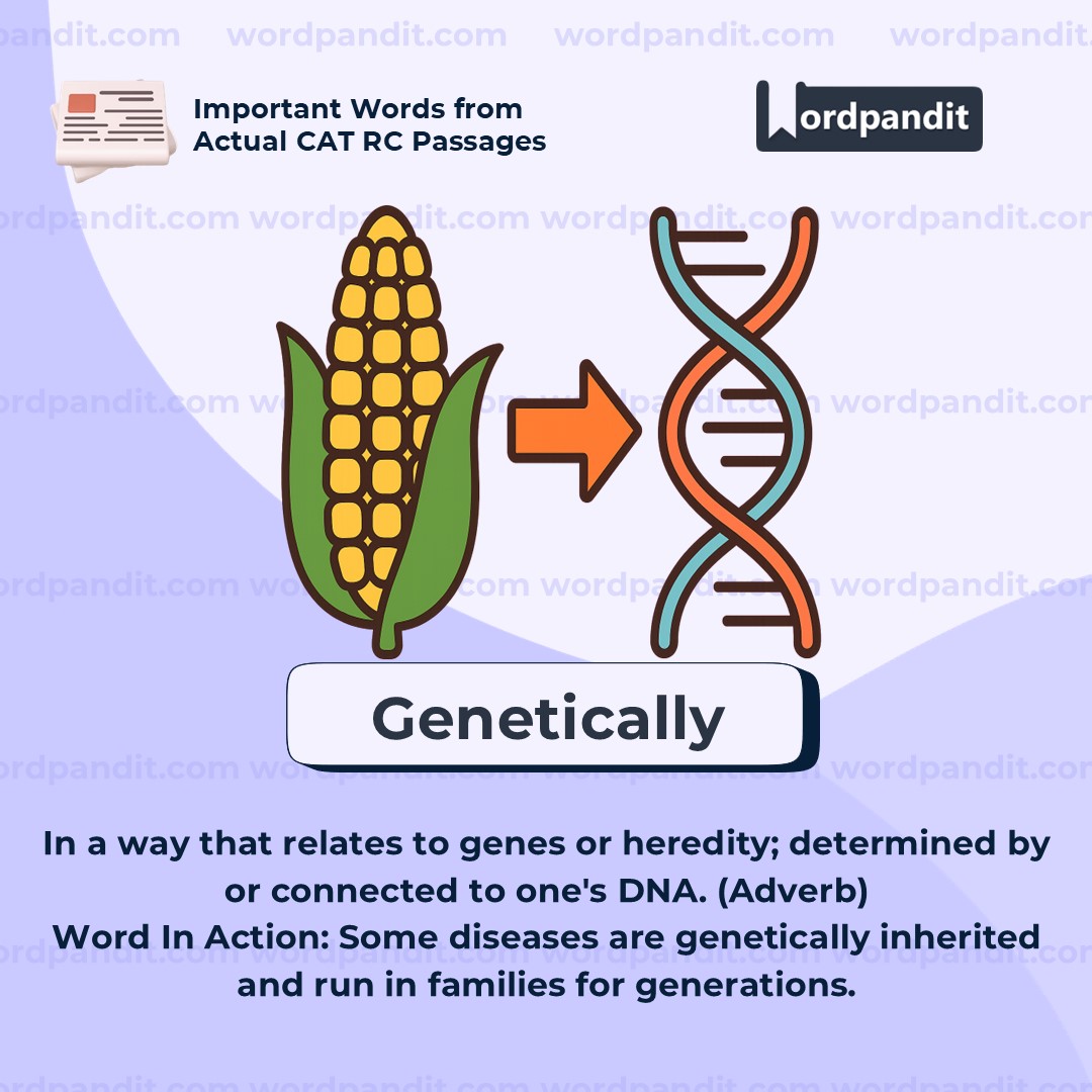 "Genetically" is a word you’ll come across often in science, especially biology and medicine. It’s key to understanding concepts like inheritance, cloning, and gene editing. Also remember: it is the adverb form of 'genetic'.