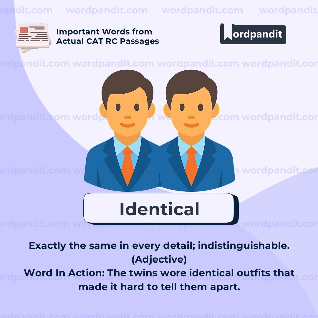 Meaning: Exactly alike or the same in every way (adjective)