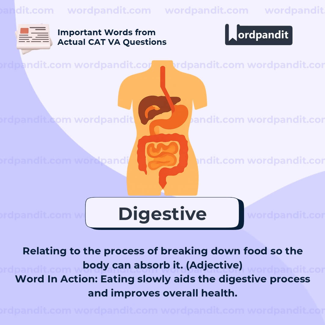 Think of “digestive” as connected to “digestion”—just like a digestive system digests food!