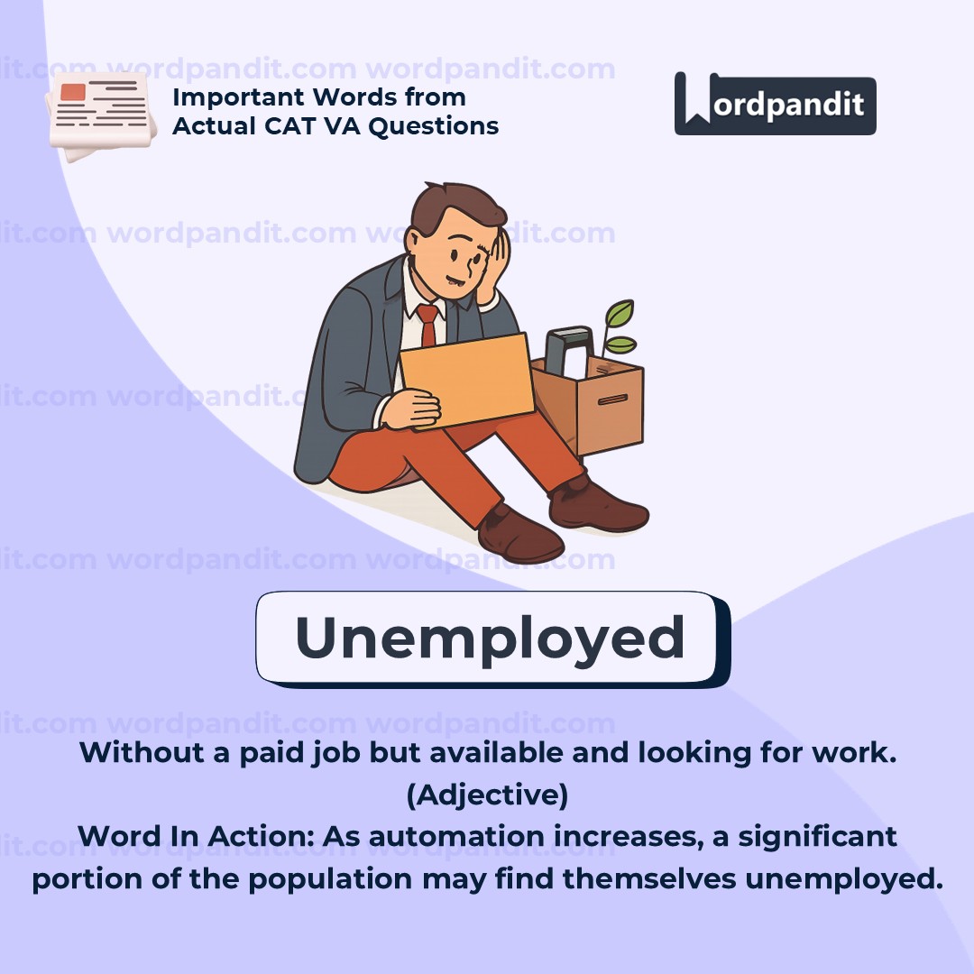 Often used in economic and social contexts, âunemployedâ doesnât just mean ânot workingââit specifically refers to people who are capable and willing to work but donât have the opportunity. Itâs crucial in statistics and policy discussions. Don't confuse it with âretiredâ or ânot working by choice.â