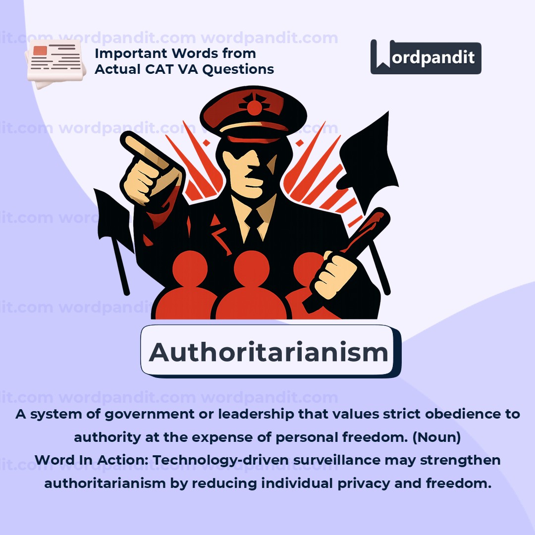 This is a key term in modern political discourse. Authoritarianism is not just about having a strong leaderâit implies lack of freedoms, unchecked surveillance, and control over speech and assembly. It's often contrasted with democracy and liberalism. Use carefully and thoughtfully in analytical writing.