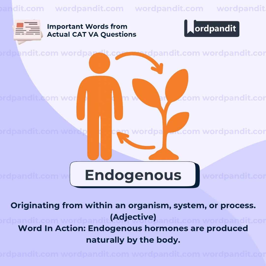 âEndogenousâ is often paired with its opposite, âexogenous.â When studying biology or economics, this pair is crucial. Endogenous = internal origin; Exogenous = external origin. Itâs a high-utility academic word in many disciplines.