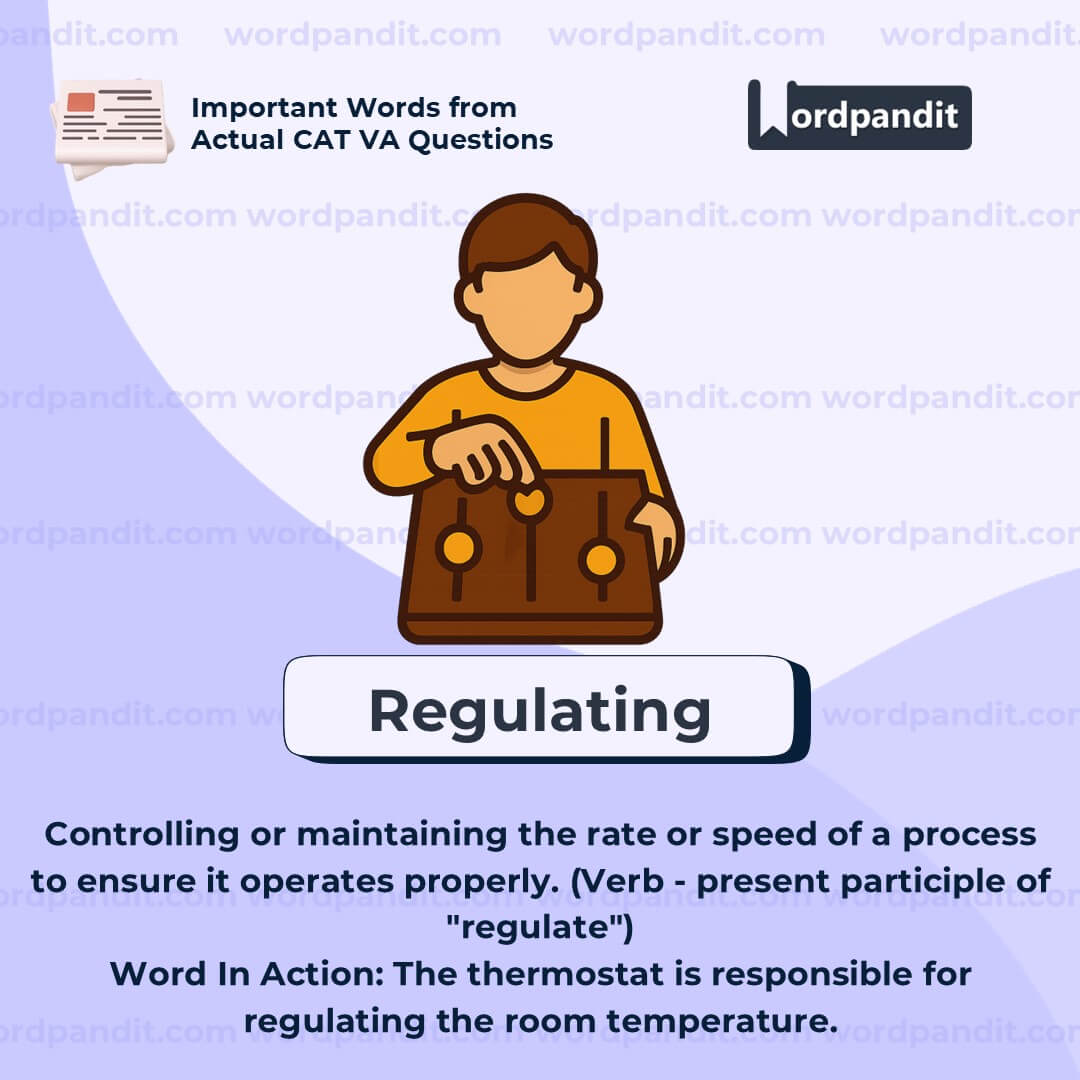 âRegulatingâ is a frequently encountered word in discussions around government policy, science, and economics. Understanding how it differs from similar terms like "monitoring" or "controlling" can enhance clarity in comprehension. It always implies a system or standard being enforced.