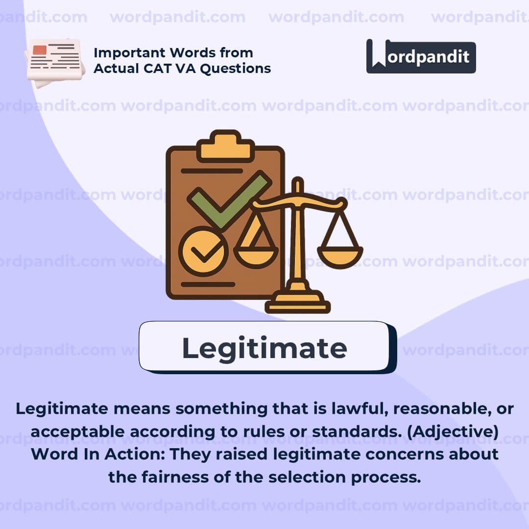 The word "legitimate" refers to something that is lawful, valid, or acceptable according to recognized standards. In everyday use, it often means something that is genuine, well-founded, or reasonable. For example, “legitimate criticism” refers to feedback that is fair, well-grounded, and made with sincere intent, rather than out of malice or misinformation.