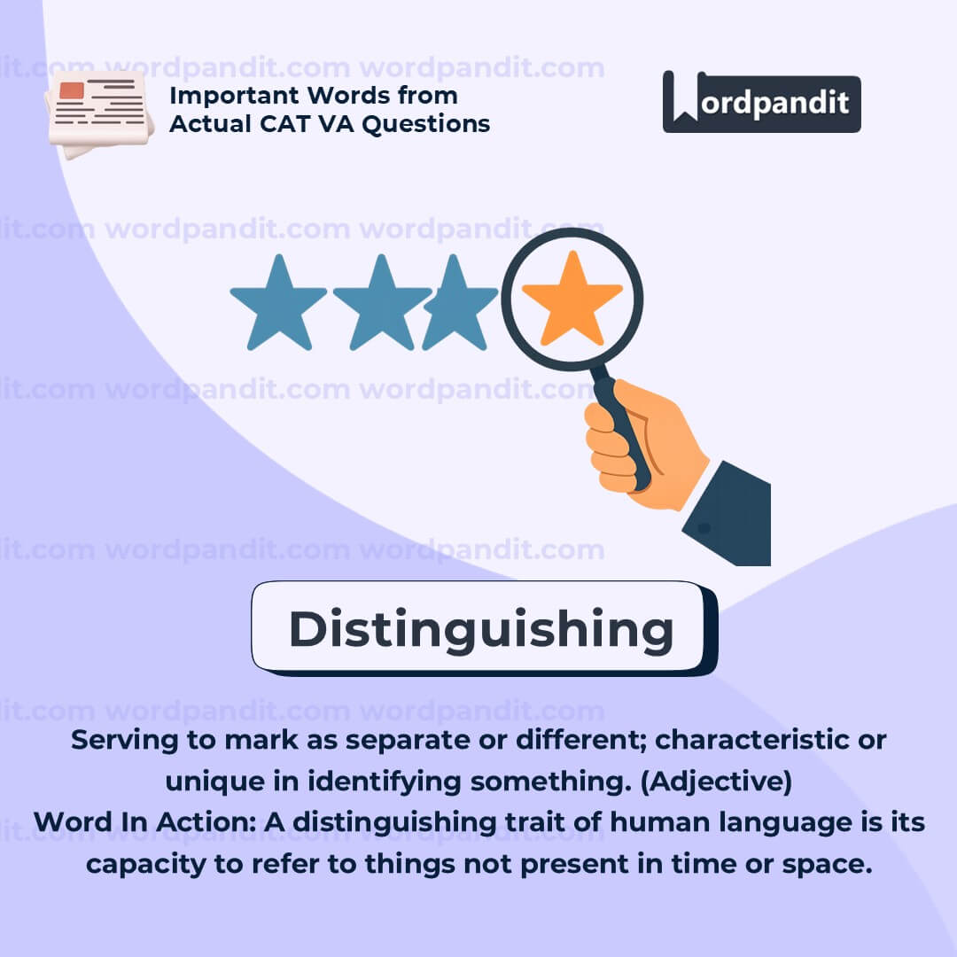 Think of âdistinguishingâ as a spotlightâitâs what makes something stand out from the crowd. In vocabulary, identifying distinguishing features helps you remember words and concepts better.