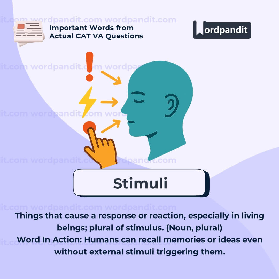 Meaning: Things that provoke a response or reaction (Noun â plural of stimulus)