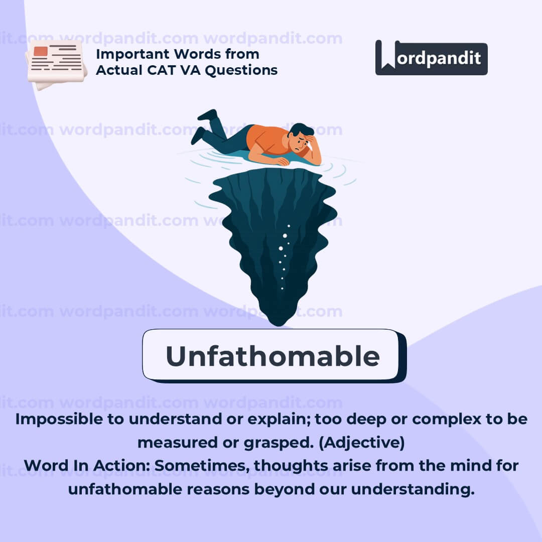 "Unfathomable" describes something that is so deep, complex, or mysterious that it cannot be fully understood or explained. In the given context, it refers to the puzzling or inexplicable nature of thoughts that arise spontaneously in our minds. These thoughts seem to come from nowhere, with causes or triggers that we can't logically traceâmaking them âunfathomable.â The word is often used to describe profound mysteries or emotions.
