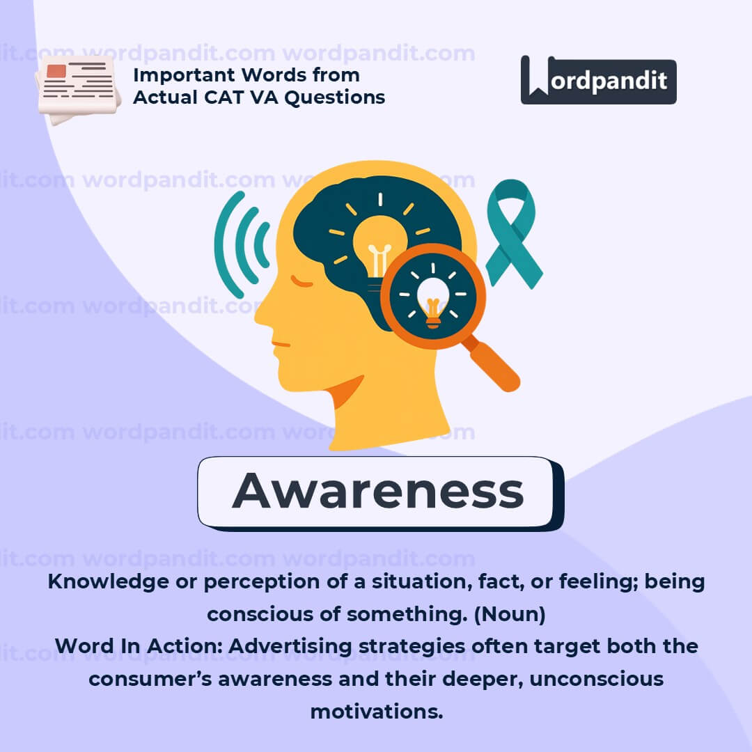 "Awareness" refers to the state of being conscious of somethingâknowing that it exists, noticing it, or understanding it. In the context of advertising and psychology, awareness represents the conscious level of perceptionâwhat people knowingly see, think about, or feel. While much of advertising operates on subconscious triggers, Packard argued that it still builds upon peopleâs existing awarenessâwhat they already know, notice, or care aboutâand then nudges them further using hidden cues.
