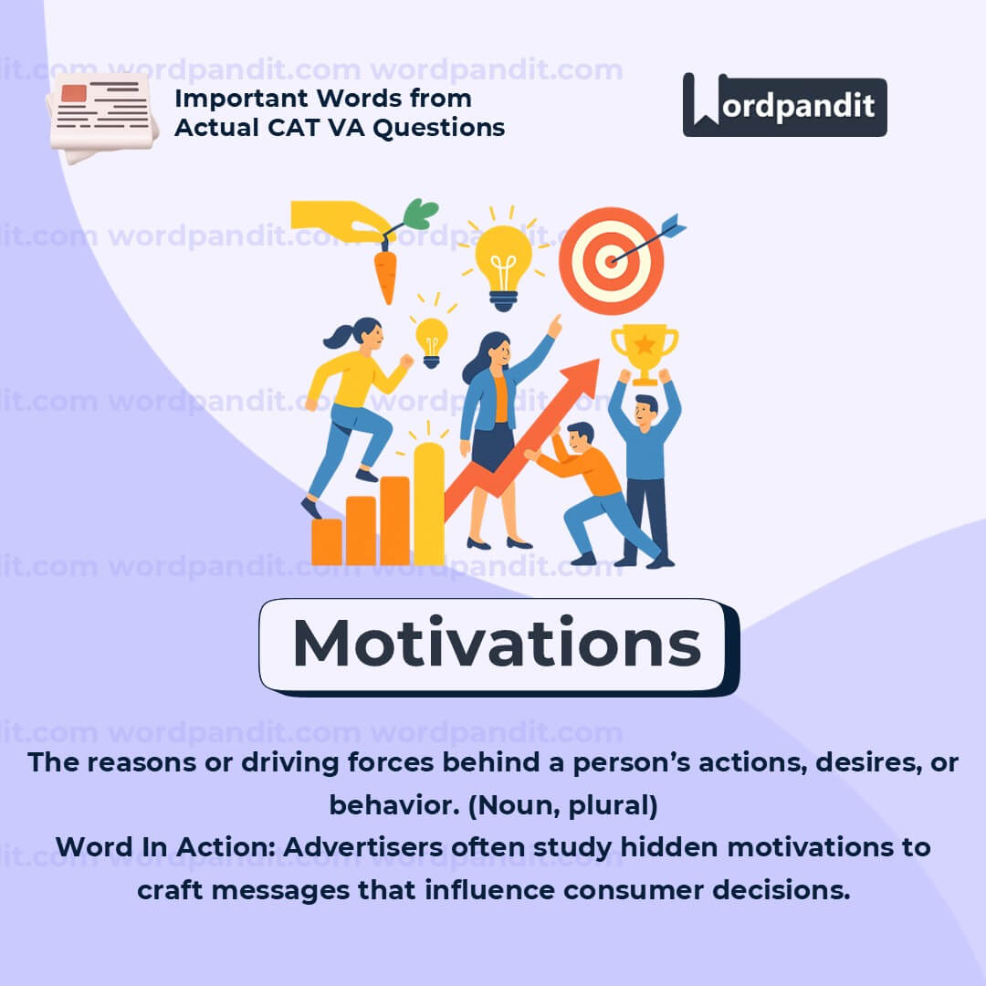 "Motivations" refers to the reasons or driving forces behind people's actions, decisions, or behaviors. In the context of advertising, the term points to both conscious and unconscious desiresâsuch as fear, desire for approval, comfort, or statusâthat influence consumers' purchasing decisions. By identifying these motivations, advertisers can craft persuasive messages that appeal to what people *really* want, even if they arenât fully aware of it themselves.