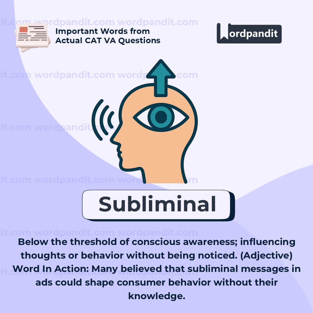 Meaning: Below the threshold of conscious perception, especially in a way meant to influence thoughts or behavior (Adjective)