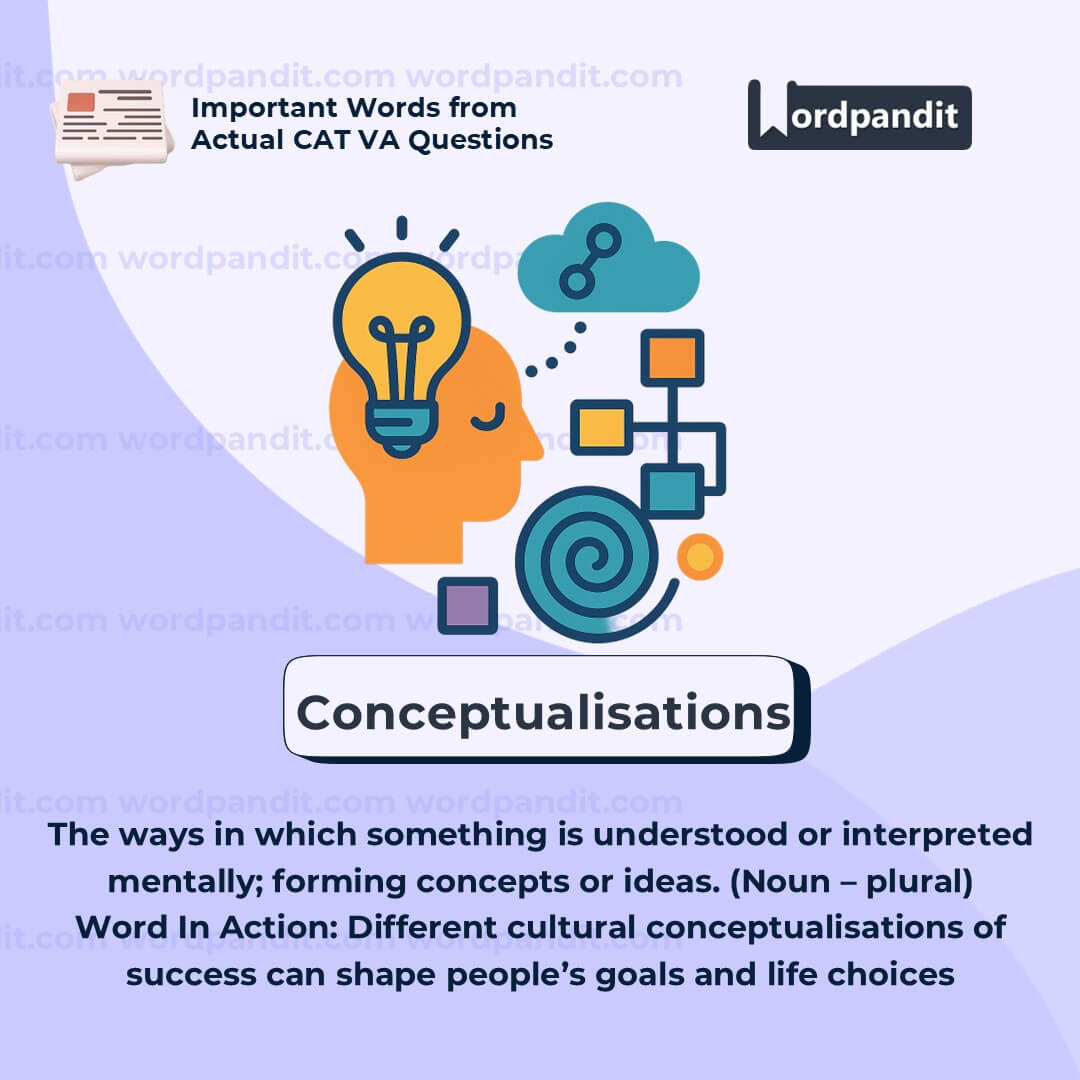 “Conceptualisations” comes from “concept” — imagine building a mental model or ‘concept shell’ for abstract ideas.