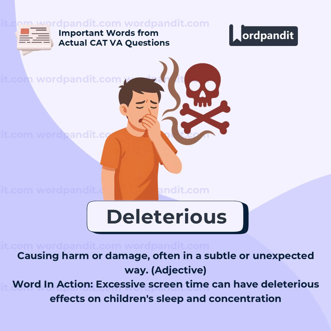 “Deleterious” sounds like “delete” — think of it as something so harmful that it should be deleted or removed before it causes damage.