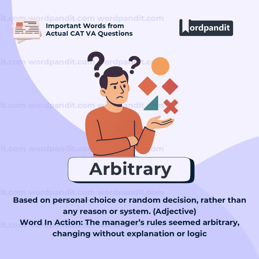 Use “arbitrary” to describe decisions or actions that seem unfair, unplanned, or unsupported by reason. It is often used critically in legal, social, or organizational contexts — especially when questioning authority or process.