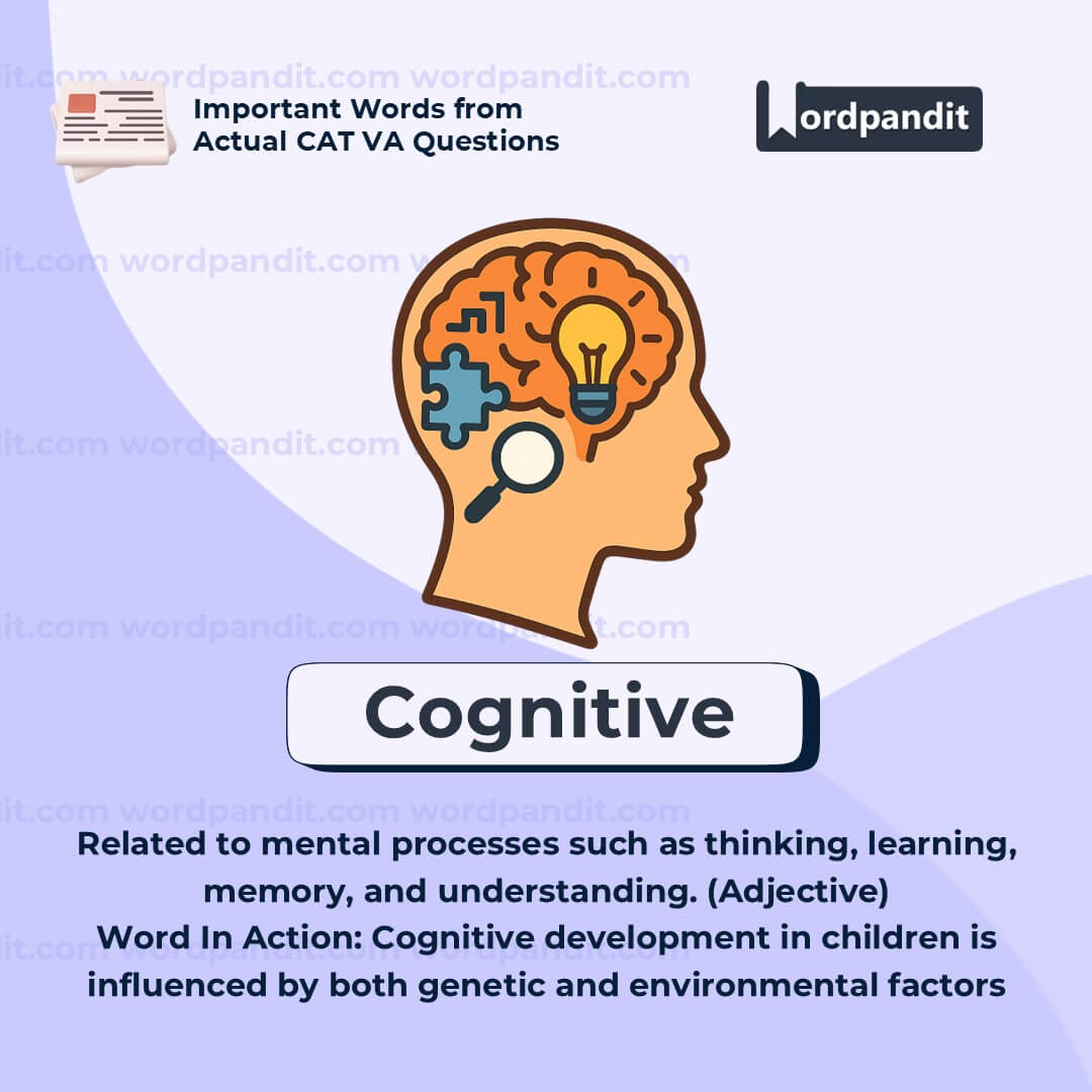 Meaning: Related to mental processes such as perception, memory, judgment, and reasoning (Adjective)