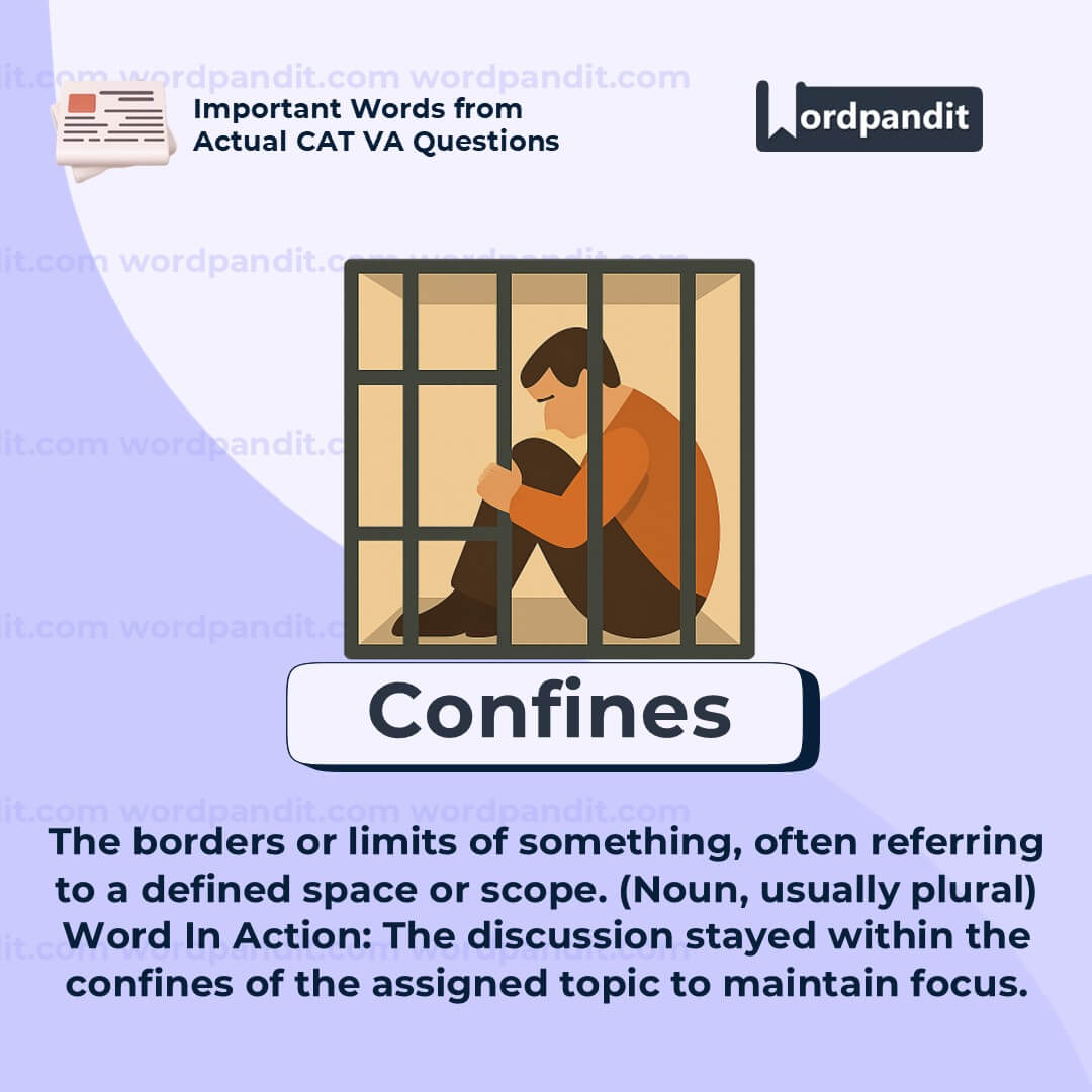 Think of “confines” as a fence around an idea or space — defining where something begins and ends.