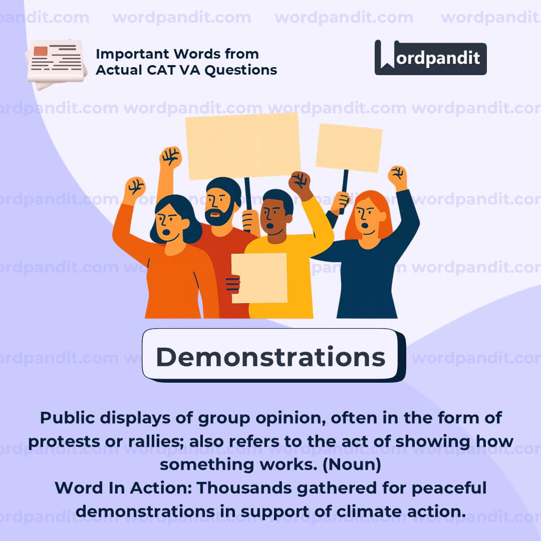 Think of “demonstrations” as *demonstrating* your feelings in public—you're showing what you stand for, loud and clear.