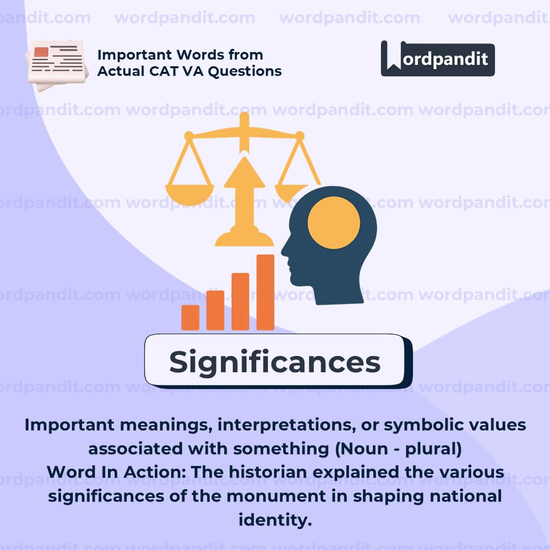 Don't confuse âsignificancesâ with just importanceâit refers to specific types of meaning that may be symbolic, cultural, or historical. When analyzing literature or history, always look beyond the obvious to uncover these hidden layers.