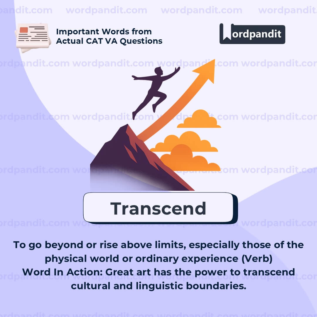 Meaning: To go beyond or rise above limits, especially those of the physical world or ordinary experience (Verb)