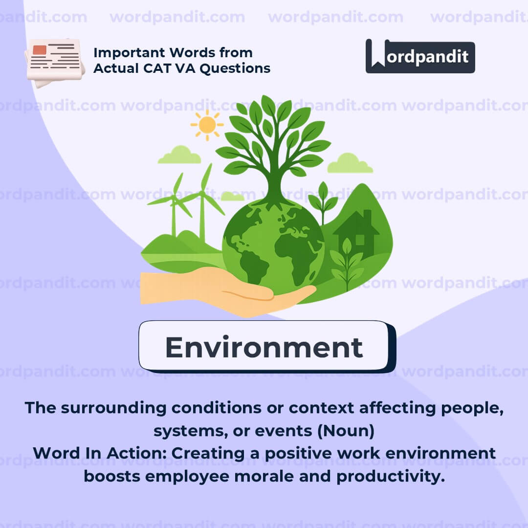 Etymology: From French *environner*, meaning âto surround,â from *environ* (around), originally referring to oneâs physical surroundings and later expanding to abstract settings.