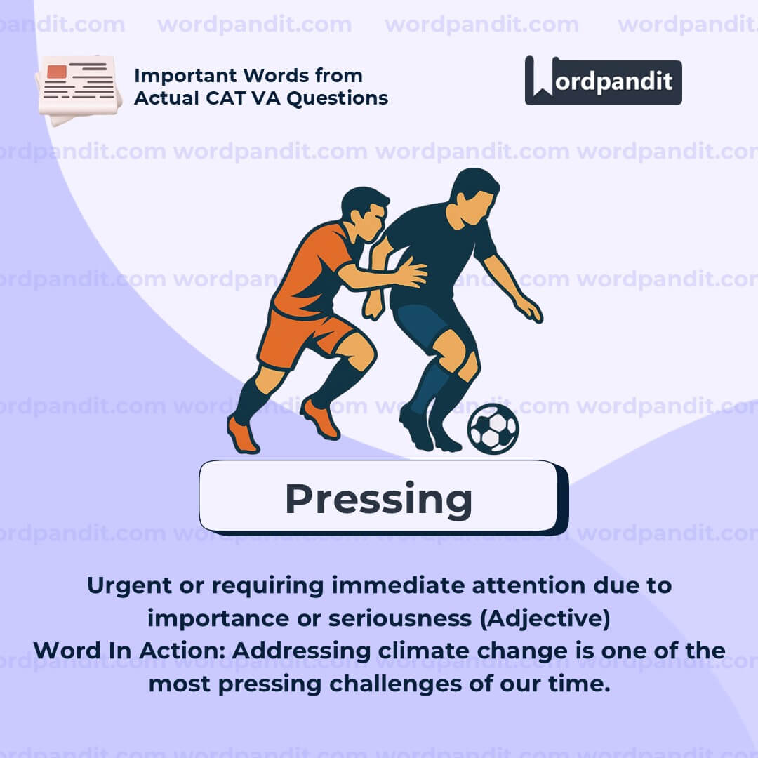âPressingâ is a strong yet subtle word thatâs perfect for academic and policy writing. Use it when describing issues that are not just importantâbut time-sensitive. Phrases like âpressing need,â âpressing issue,â and âpressing concernâ are common and powerful.