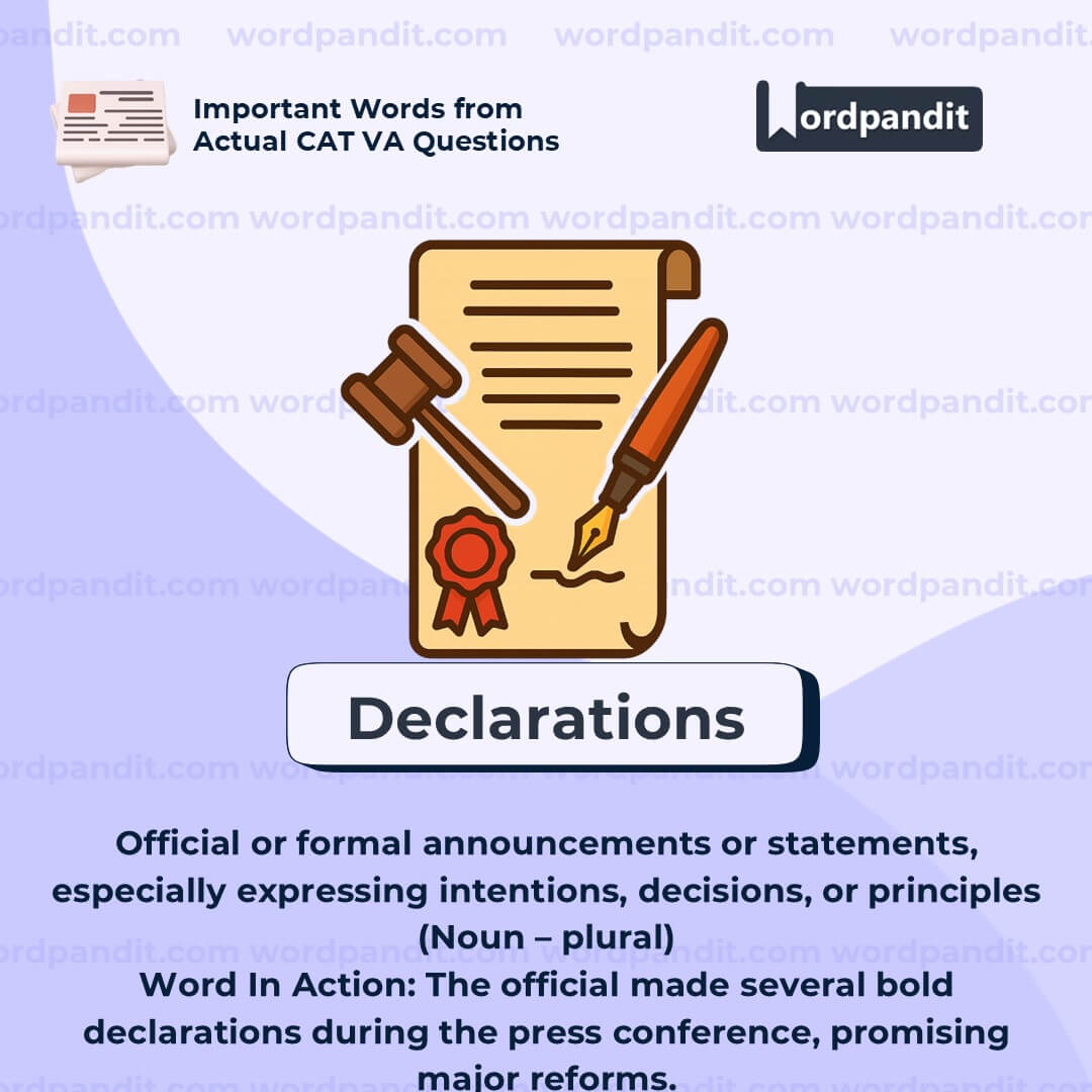 Think of âdeclarationsâ as **clear clarifications**âthey declare or make a position known to the world.