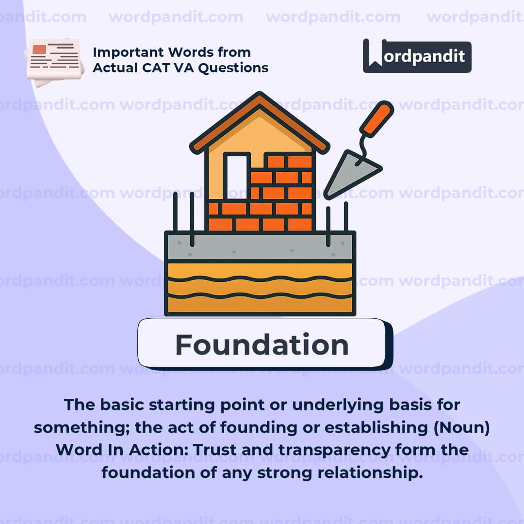 âFoundationâ is used in architecture, education, law, and science to describe the base from which systems are built. In writing and analysis, it's important to identify the foundation of an argument or theory to understand its strength.
