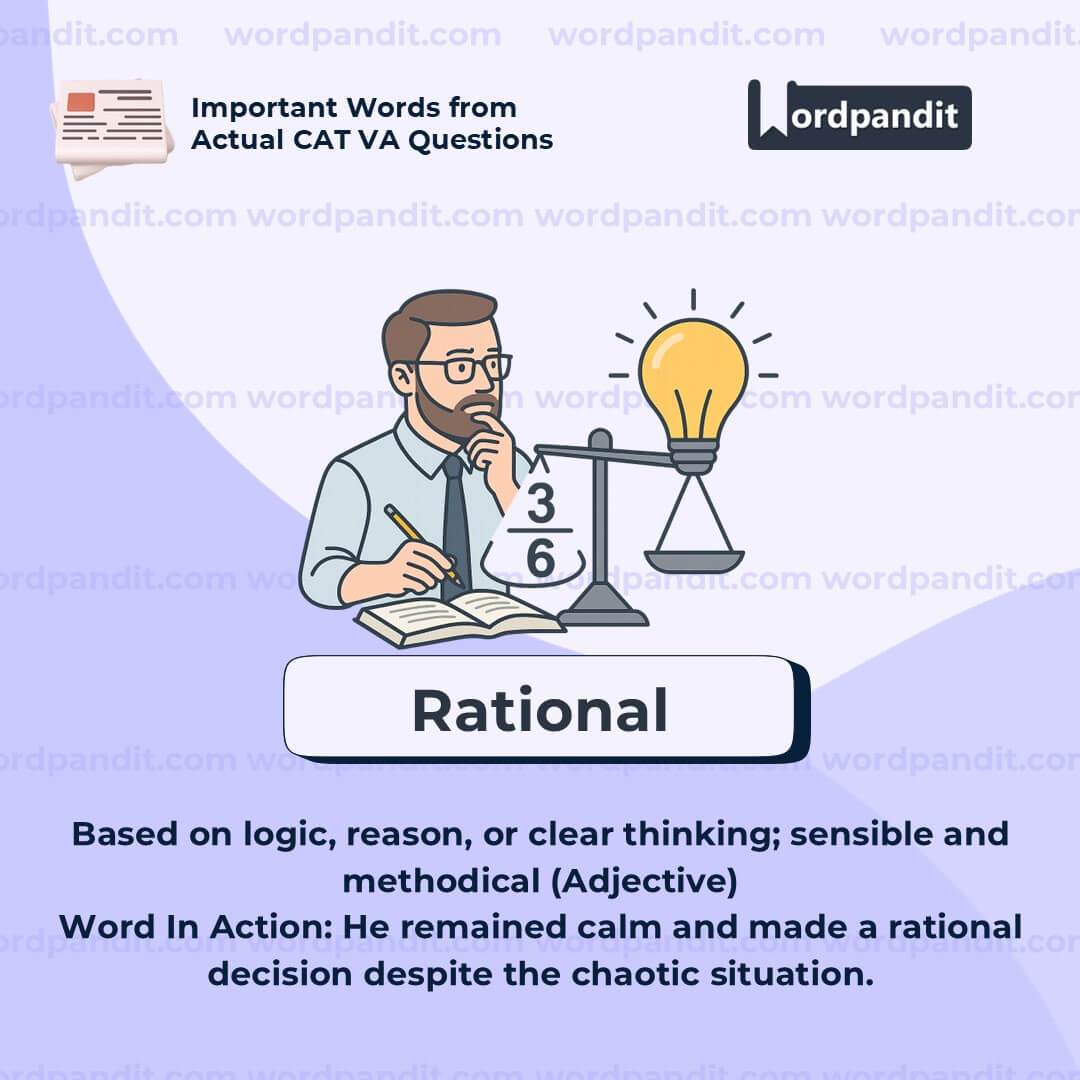 âRationalâ is a word that crops up often in debatesâwhether philosophical, ethical, or scientific. Use it when discussing decision-making, analysis, or structured systems. It often contrasts with emotional or impulsive behavior.