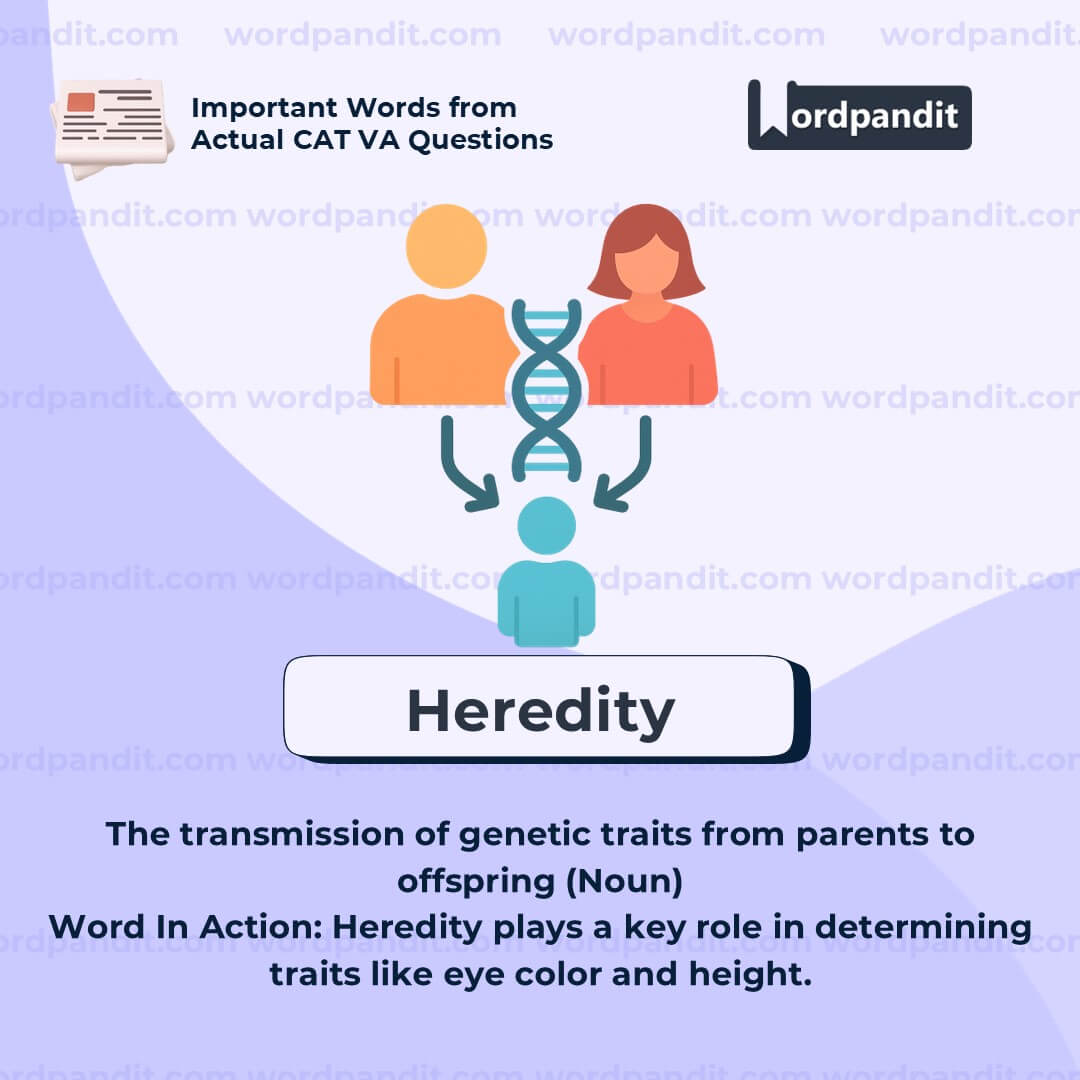Meaning: The transmission of genetic traits from parents to offspring (Noun)