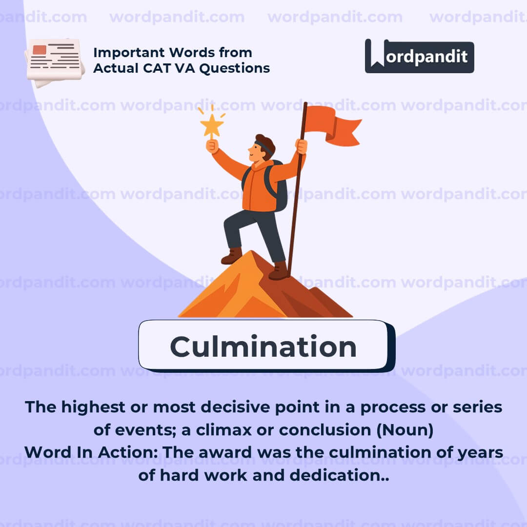 Think of “culmination” as the **crown** on top of a long process—it represents both a high point and a conclusion.