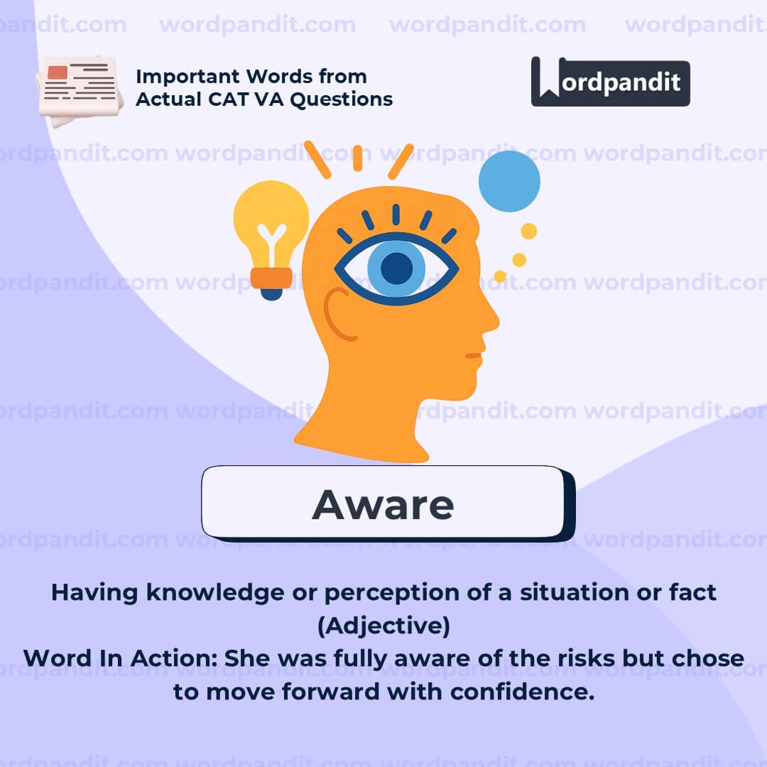 Meaning: Having knowledge or perception of a situation or fact (Adjective)