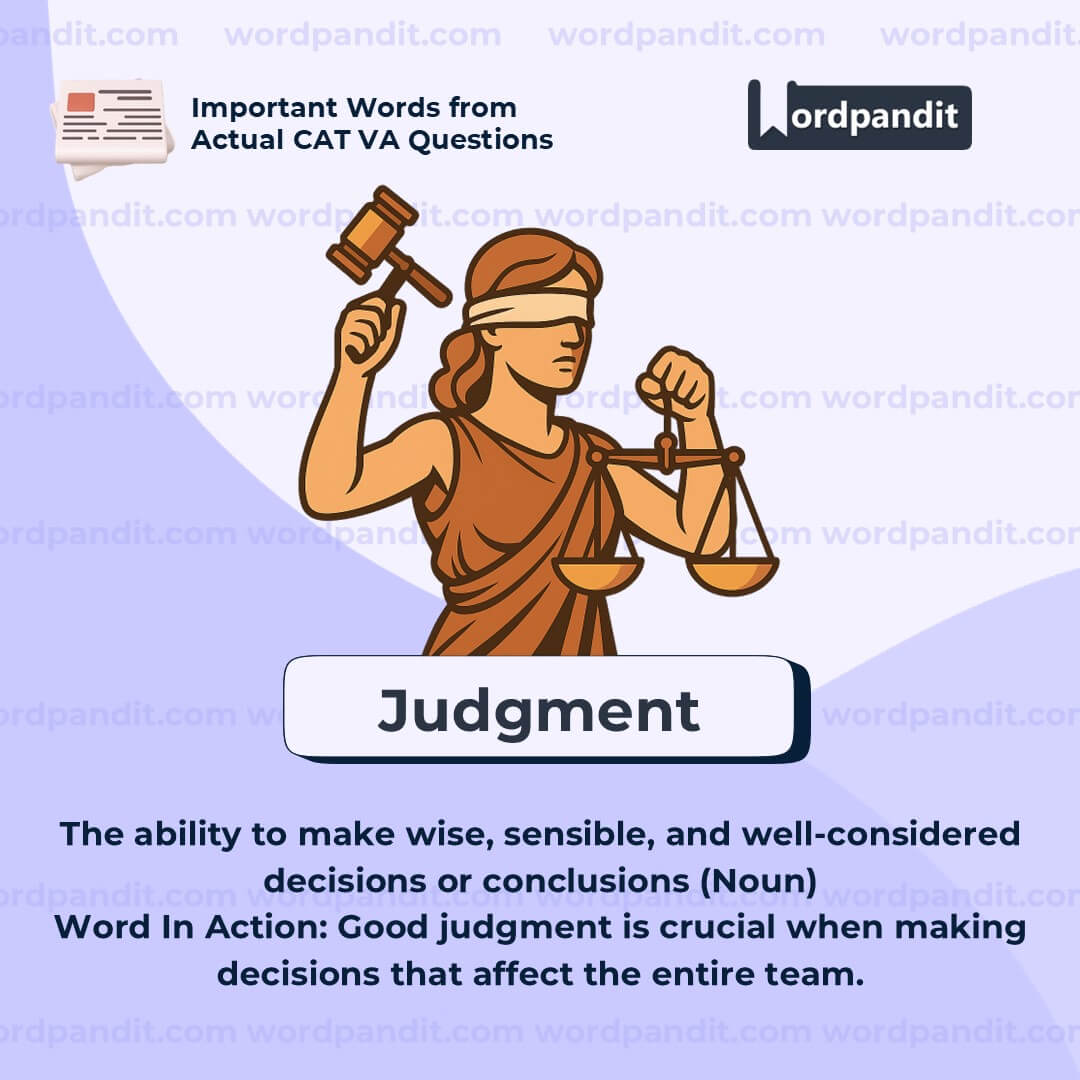 “Judgment” is a foundational word for discussions around leadership, evaluation, ethics, and critical thinking. Use it when describing the human element in decision-making that goes beyond mere numbers or logic. It implies wisdom, not just information.