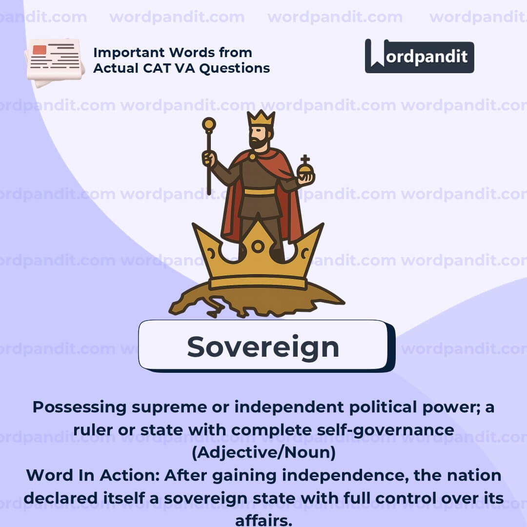 Meaning: Possessing supreme or independent political power; a ruler or state with complete self-governance (Adjective/Noun)