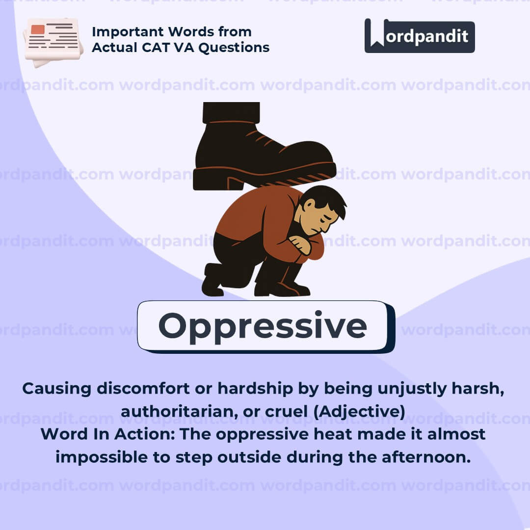 Think of âoppressiveâ as âpressing downââitâs like a heavy weight that keeps someone or something from rising, breathing, or expressing freely.