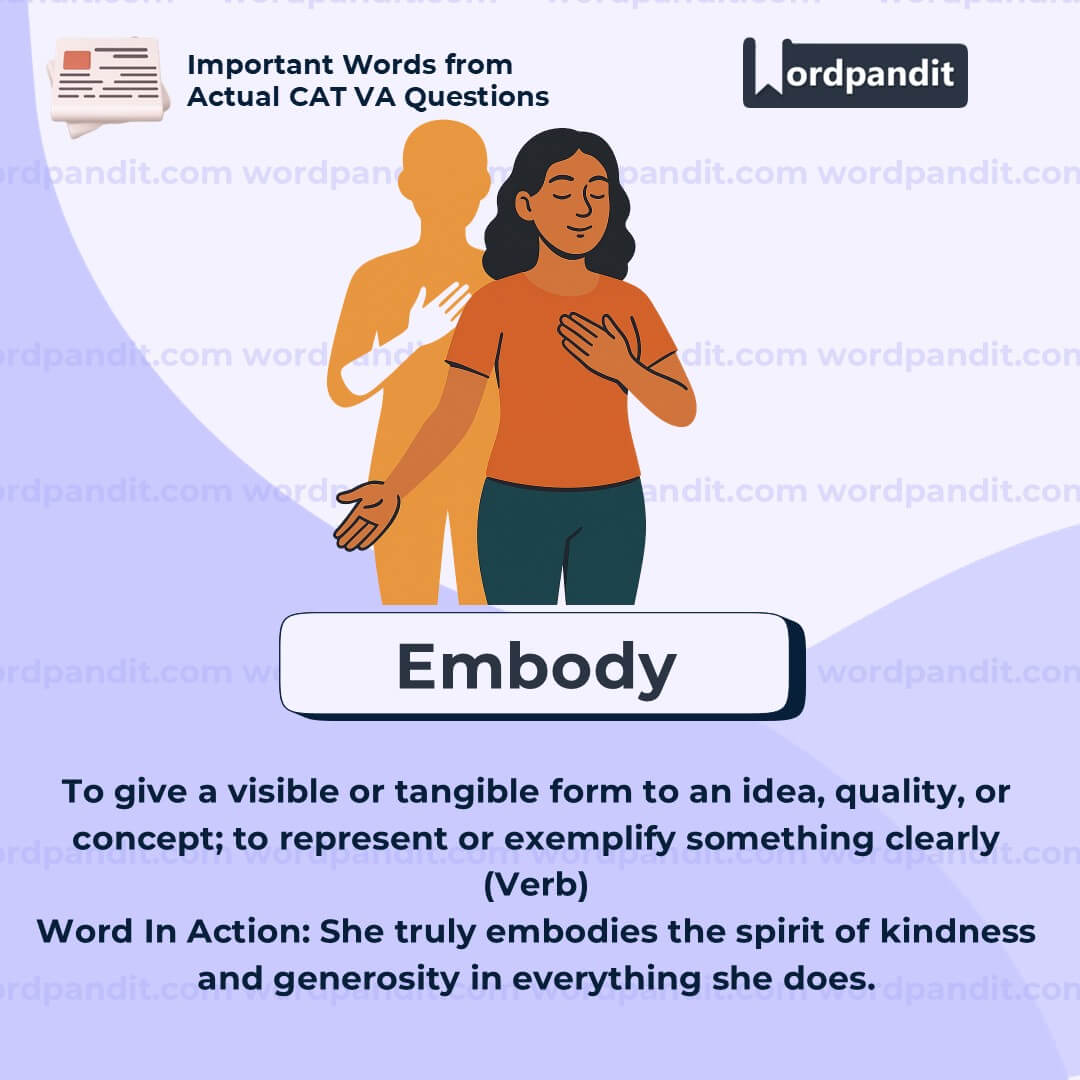 "Embody" is used in leadership training, branding, social criticism, and literatureâanywhere there's a need to turn ideals into lived or visible action, whether through people, products, or symbols.