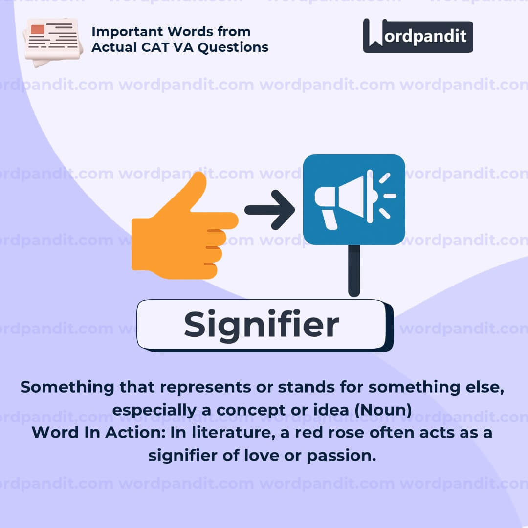 Break it down: âSignifyâ means âto show or stand for something.â So a *signifier* is the thing doing the showingâitâs the symbol, not the meaning itself.
