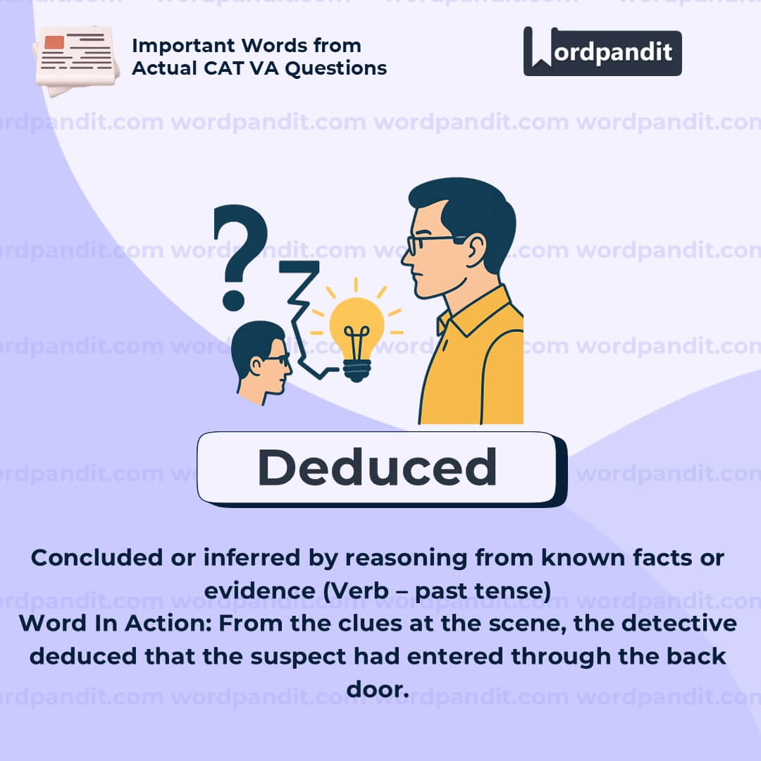 Think of âdeducedâ as âled downâ a logical pathââdeâ (down) + âducedâ (led). It's how you lead your mind from facts to a conclusion.