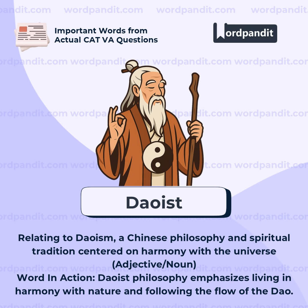 Meaning: Relating to Daoism, a Chinese philosophy and spiritual tradition centered on harmony with the universe (Adjective/Noun)