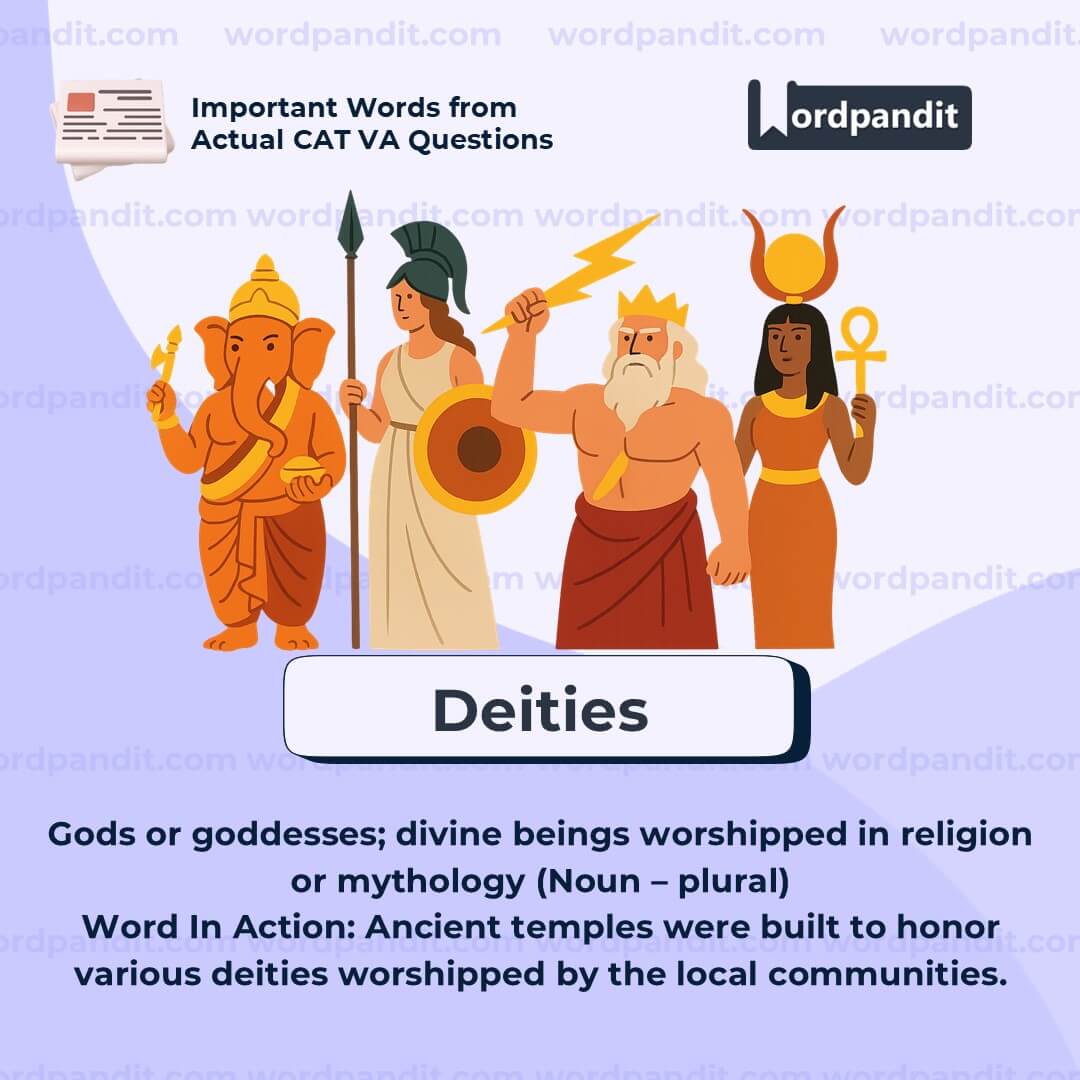 "Deities" play vital roles in mythology, literature, comparative religion, anthropology, and cultural festivals. They shape rituals, moral stories, and how people view power, justice, and the natural world.